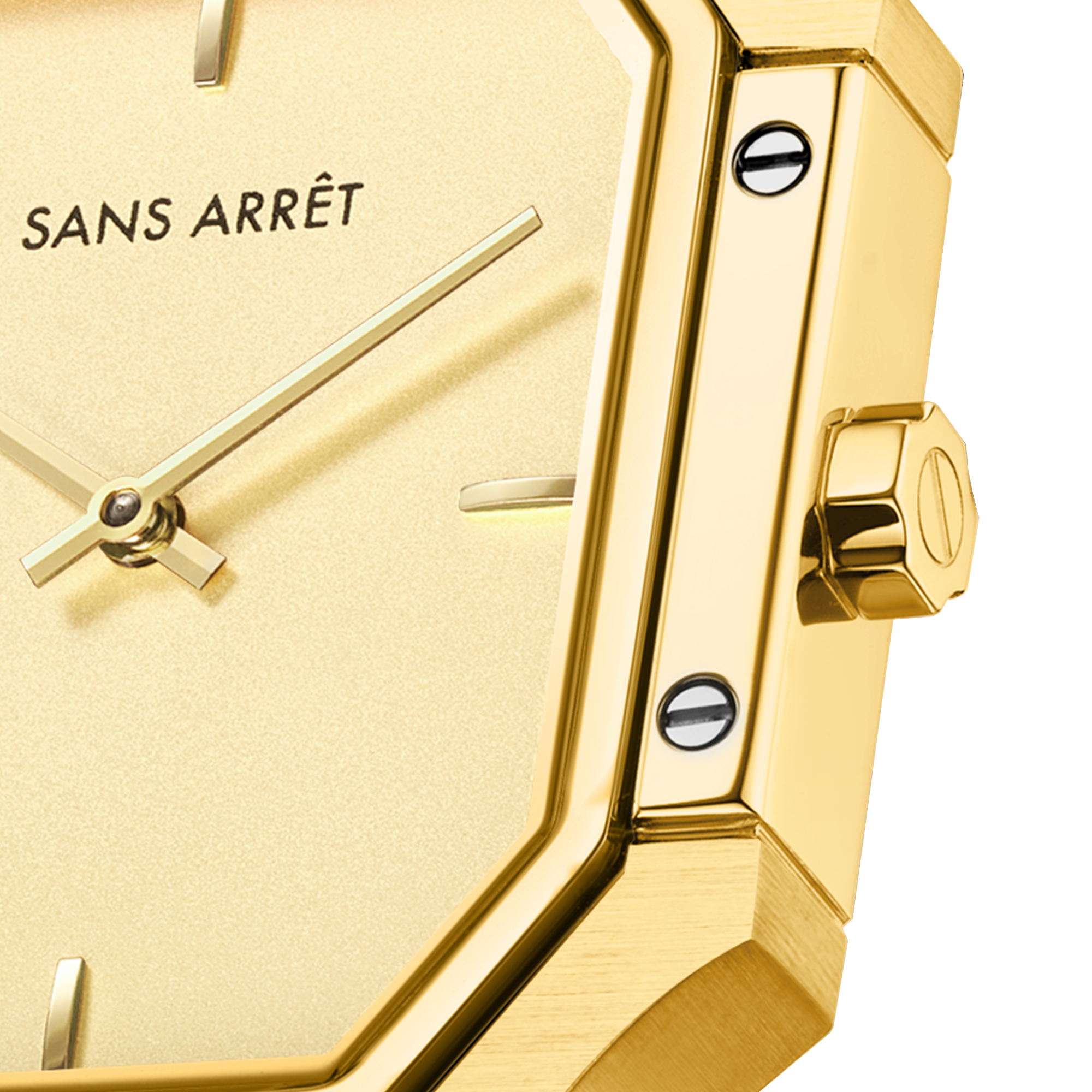 The octagonal symmetry gives the watch a sense of balance and harmony, and is a tribute to our beloved vintage period. Simple geometric symmetry is present in each watch.
