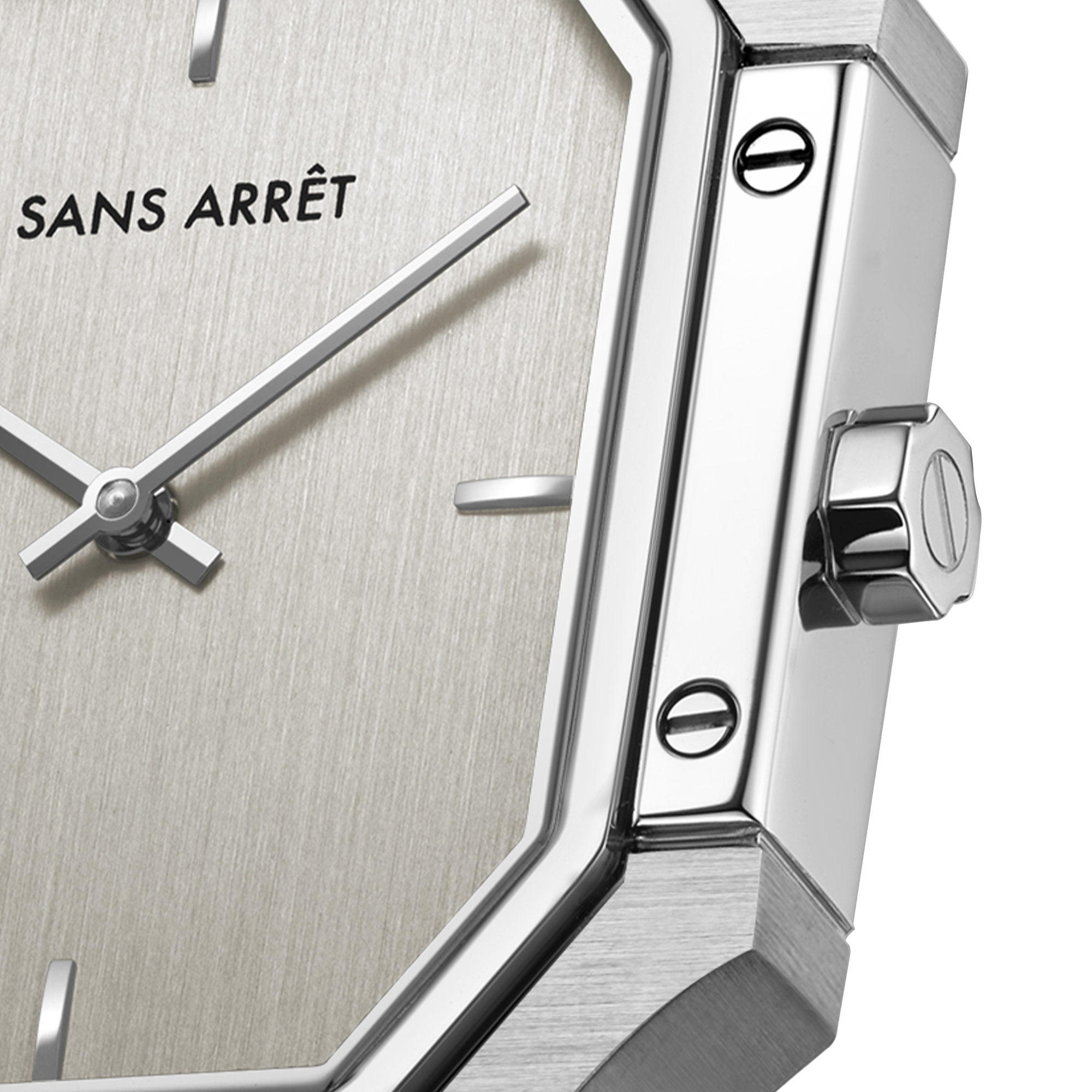 The octagonal symmetry gives the watch a sense of balance and harmony, and is a tribute to our beloved vintage period. Simple geometric symmetry is present in each watch.