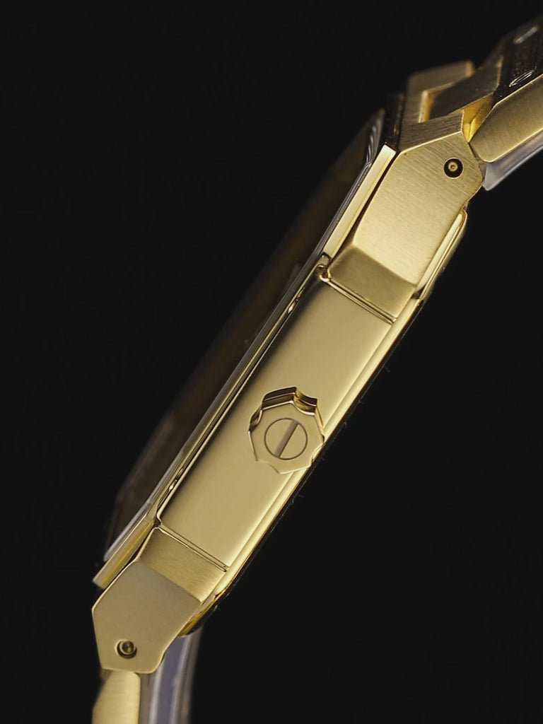 The octagonal symmetry gives the watch a sense of balance and harmony, and is a tribute to our beloved vintage period. Simple geometric symmetry is present in each watch.