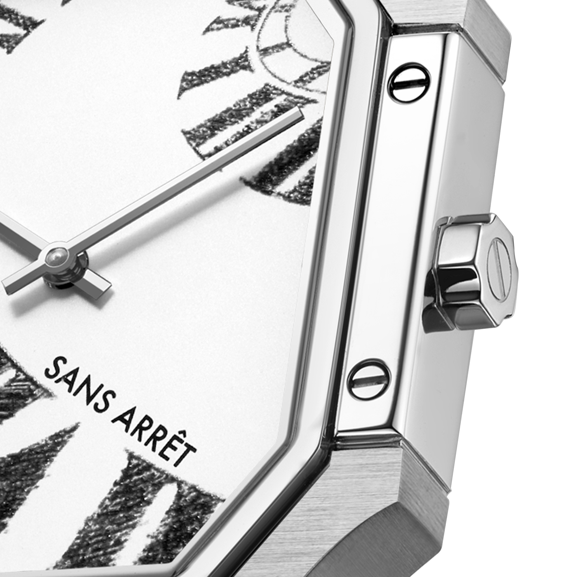 The octagonal symmetry gives the watch a sense of balance and harmony, and is a tribute to our beloved vintage period. Simple geometric symmetry is present in each watch.