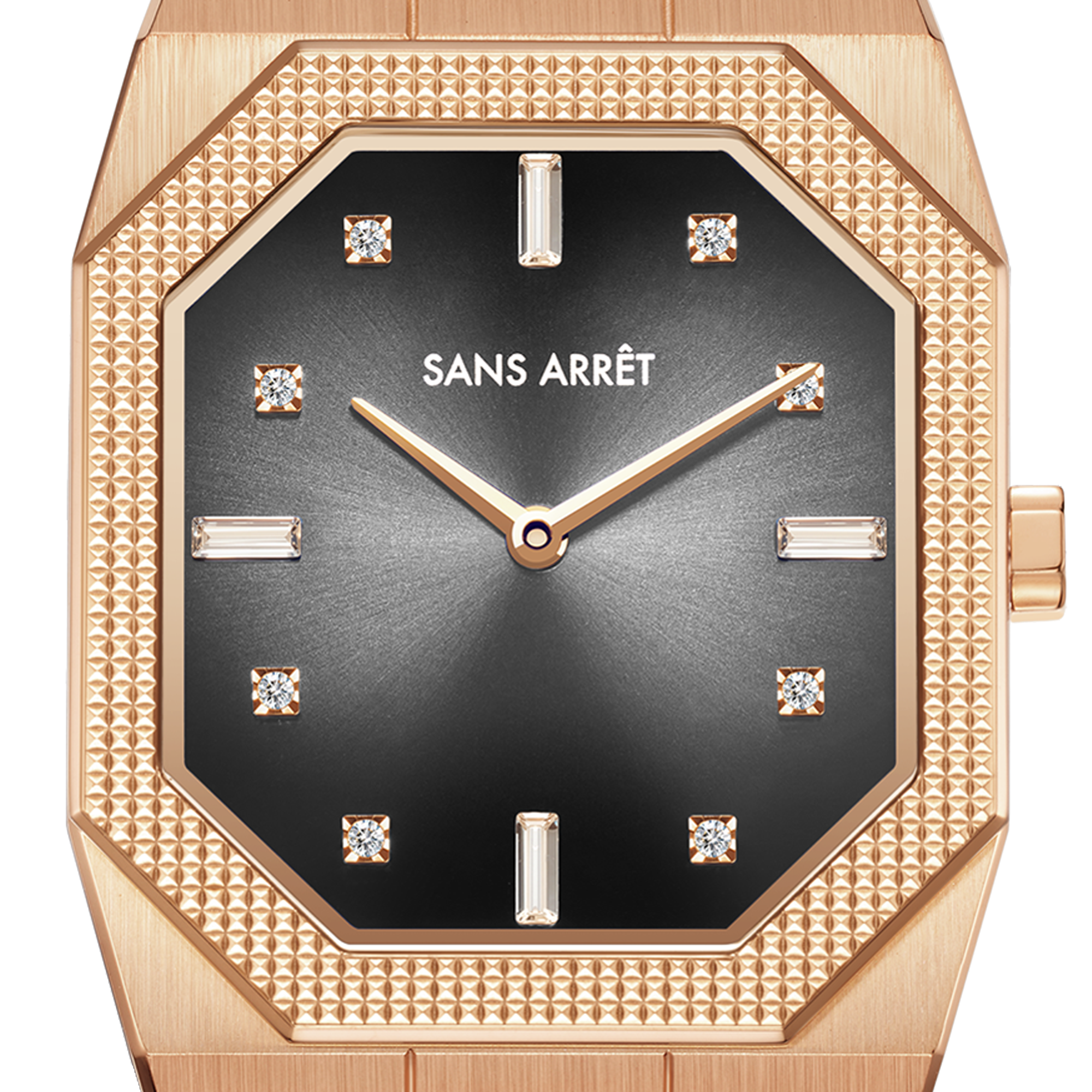 The polygonal geometric design of the crown is retro and simple, and is in harmony with the shape of the dial.