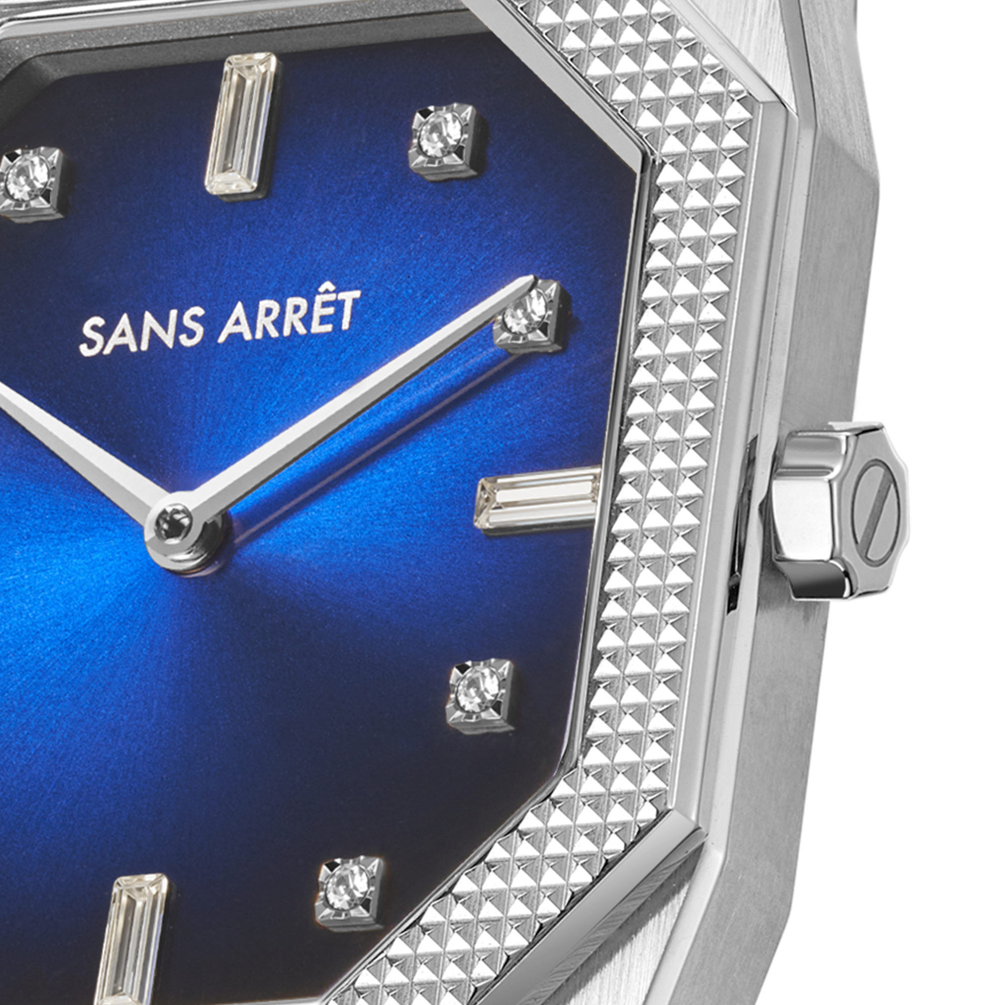 The polygonal geometric design of the crown is retro and simple, and is in harmony with the shape of the dial.