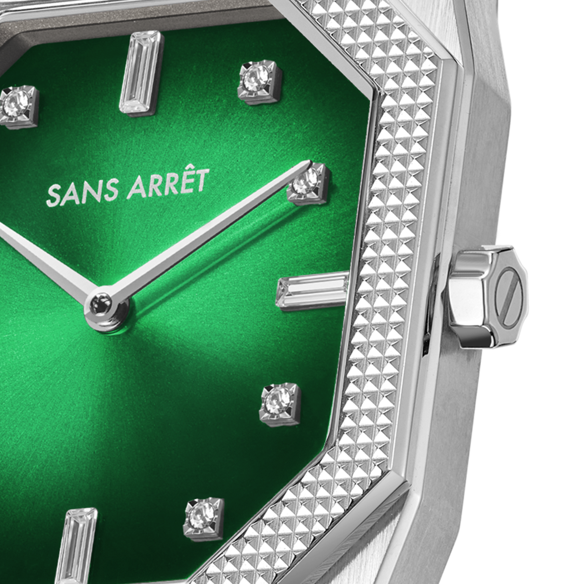 The polygonal geometric design of the crown is retro and simple, and is in harmony with the shape of the dial.