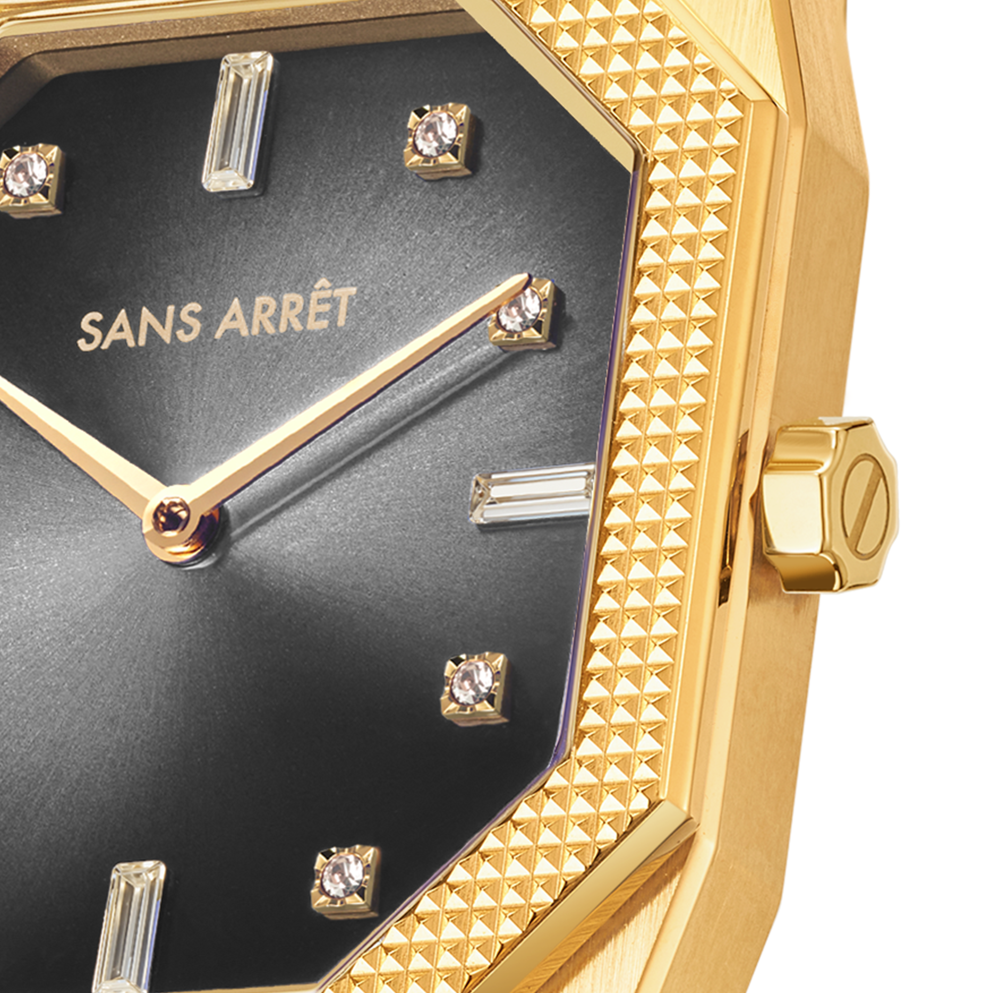 The polygonal geometric design of the crown is retro and simple, and is in harmony with the shape of the dial.