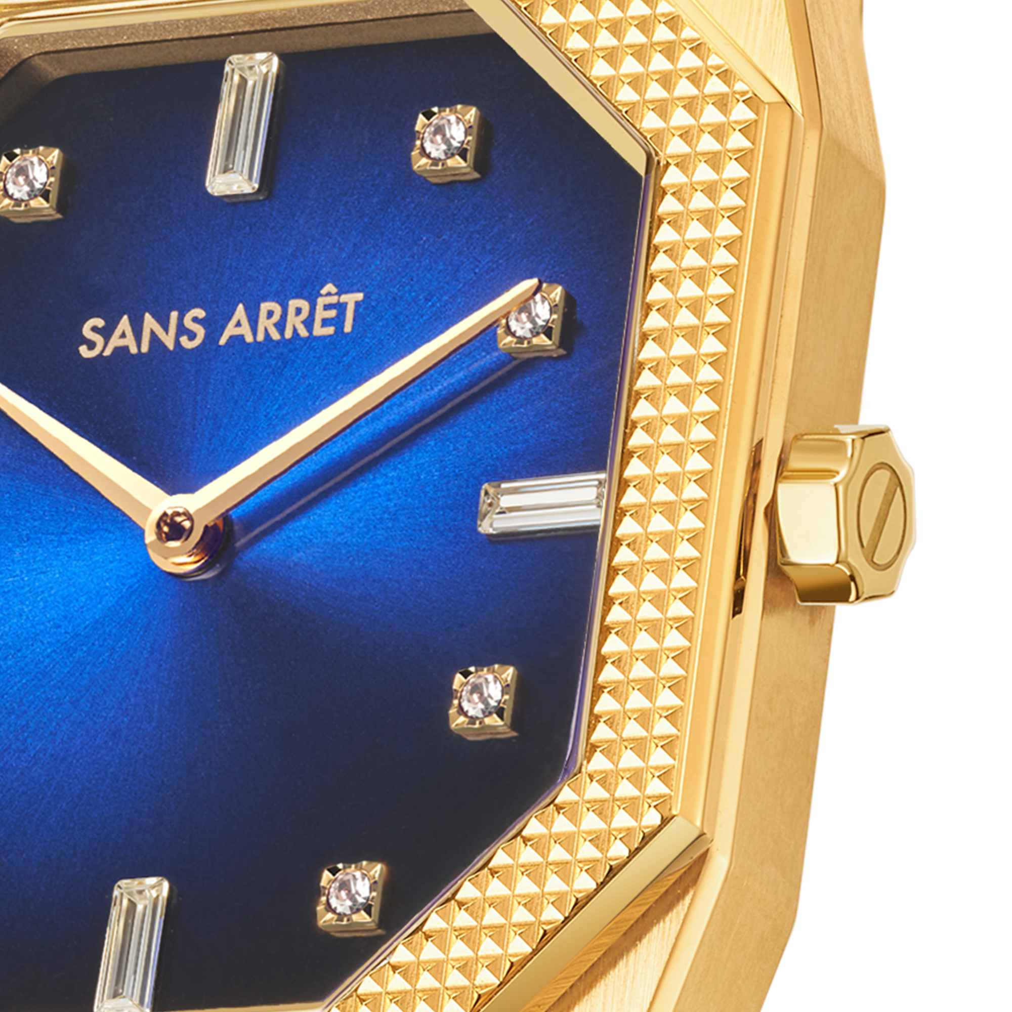 The polygonal geometric design of the crown is retro and simple, and is in harmony with the shape of the dial.