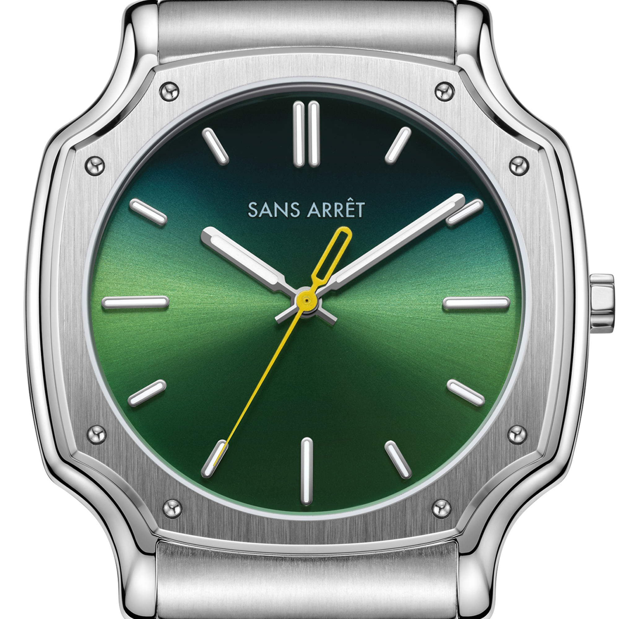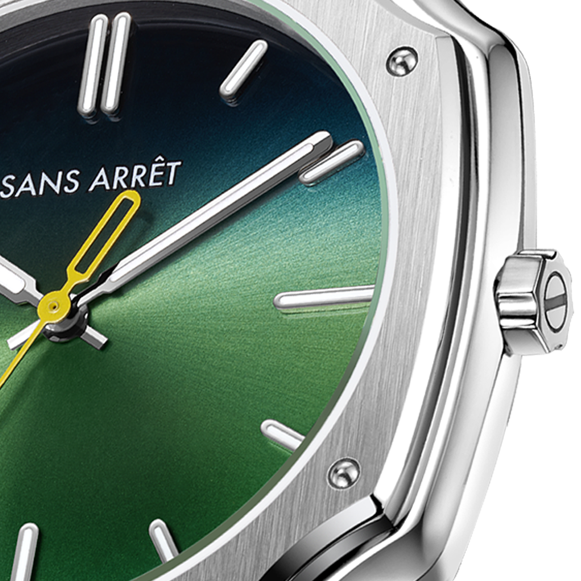 The blue-green gradient dial, inspired by the beauty of forests and the aurora borealis, brings energy and life to your wrist.