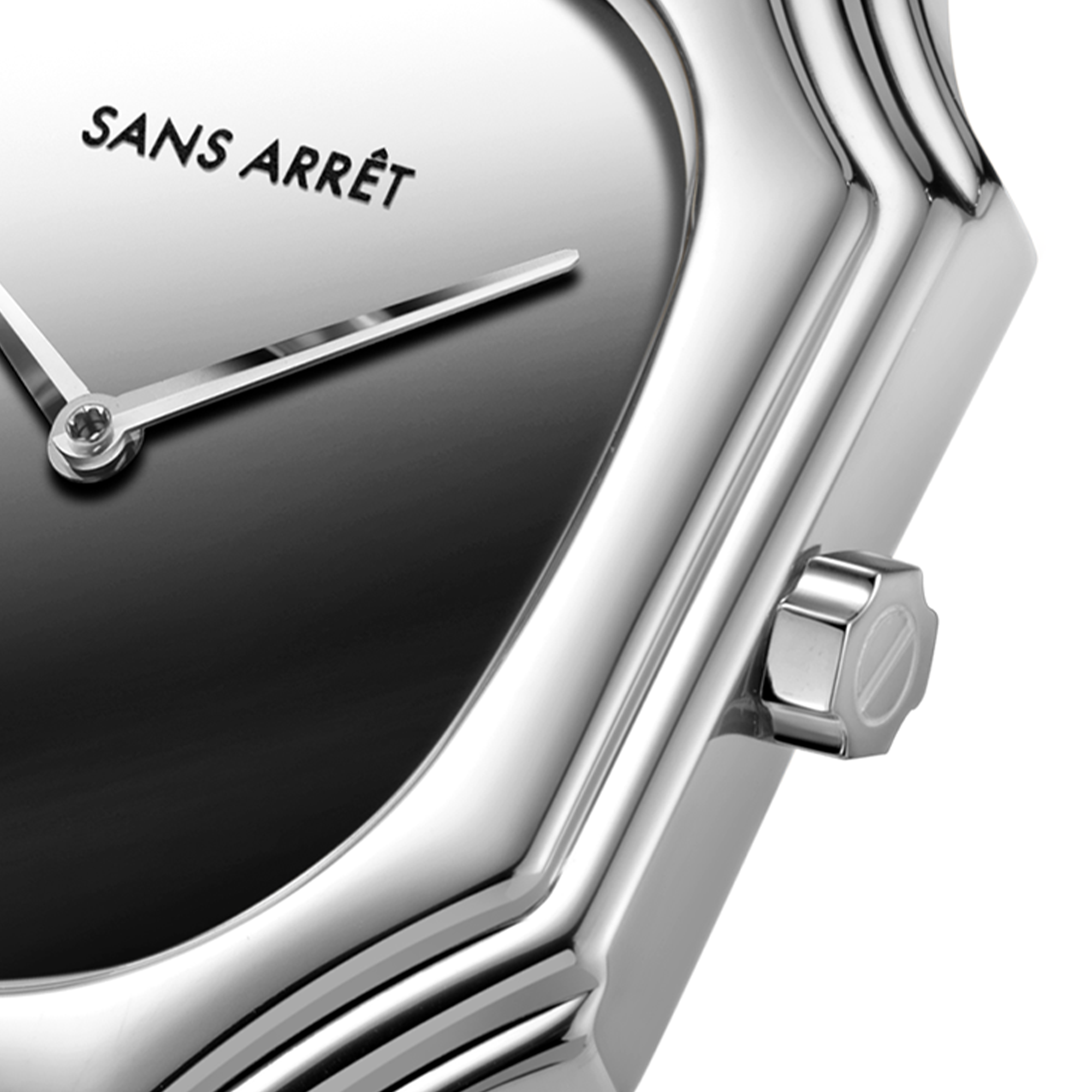 This collection is all about optical phenomena. The long octagonal case design is softer and rounder than the AMBITIONIST collection, and the soft bracelet-style strap gives the watch an elegant, gentle, retro feel. This design is the same as the SAROS collection.