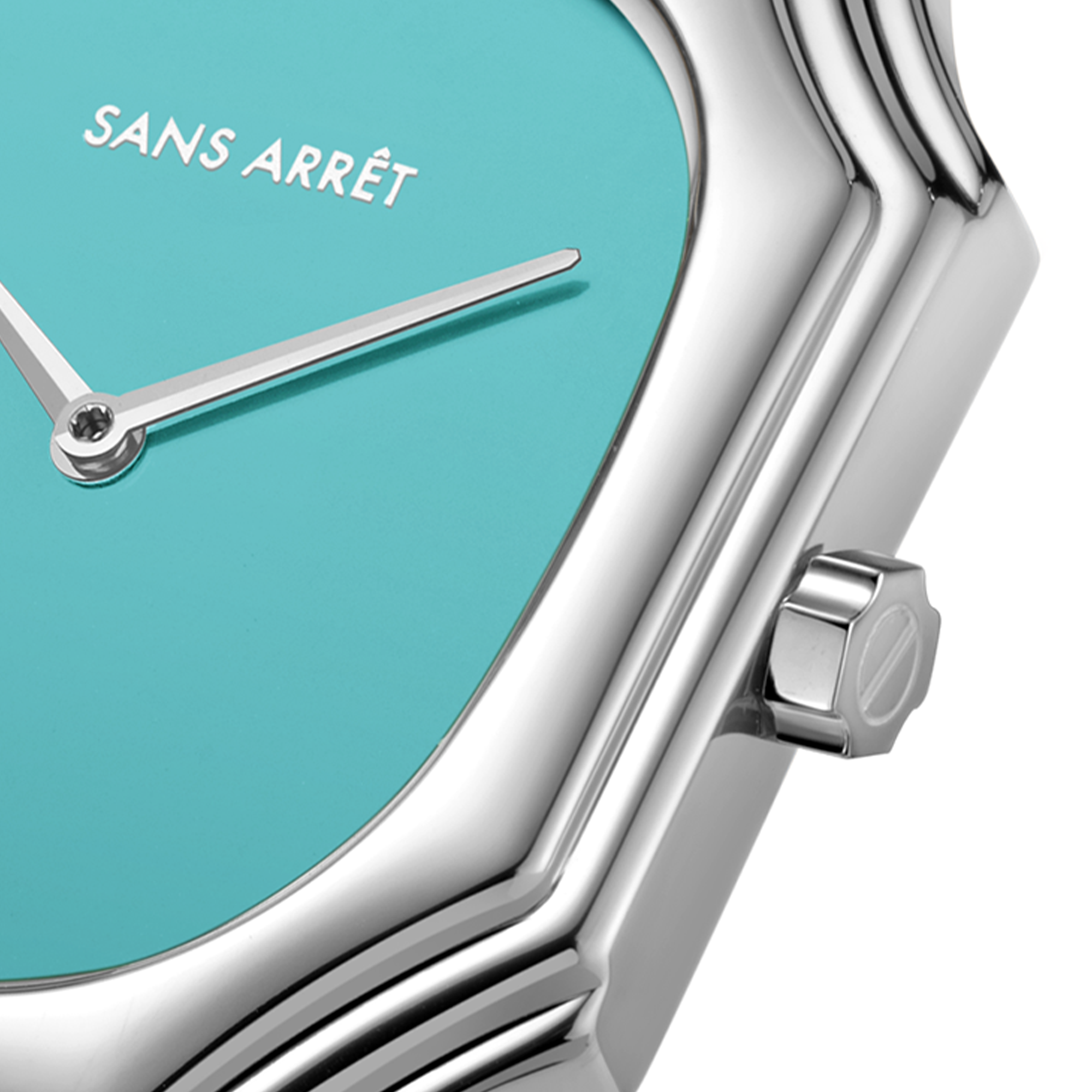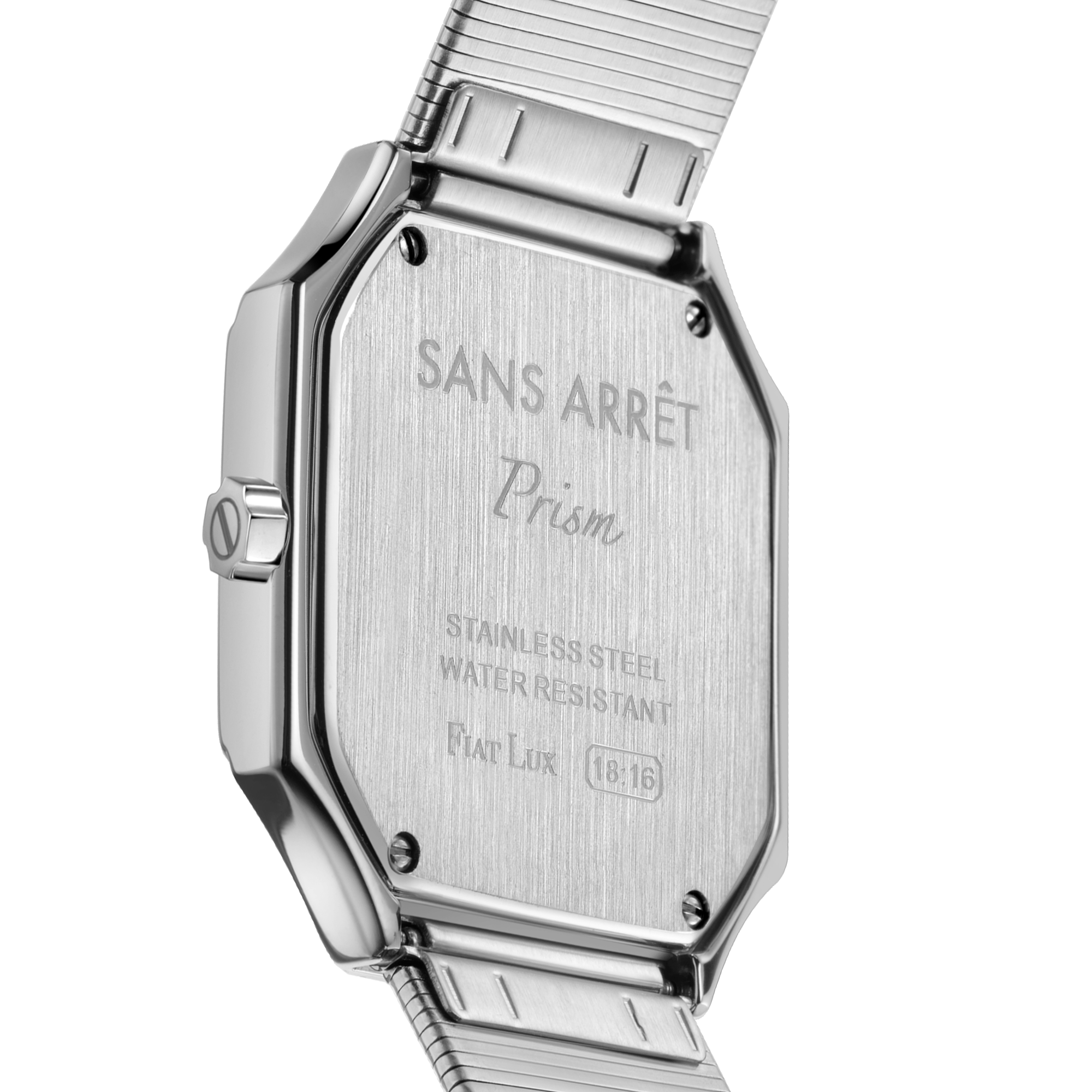 This collection is all about optical phenomena. The long octagonal case design is softer and rounder than the AMBITIONIST collection, and the soft bracelet-style strap gives the watch an elegant, gentle, retro feel. This design is the same as the SAROS collection.